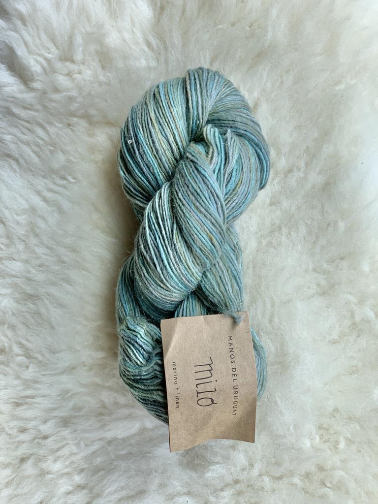 Milo is a gorgeous simple ply merino and linen blend. The linen unique nature gives Milo a rustic yet elegant look, with its raw fibers and almost metallic shine. We use unbleached linen and non superwash merino for a more natural option. We love the drape of the finished fabric and find it perfect for season spanning projects such as kerchiefs, shawls and lightweight tops.